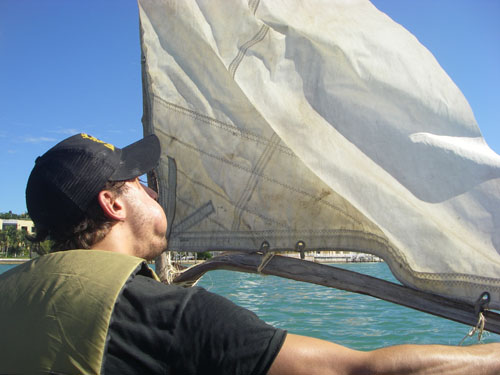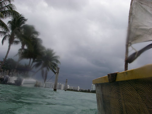 The wind died on the leeward side of the the island.